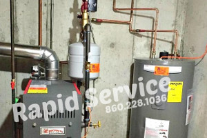 A Mansfield CT homeowner gave us a call because he had no heat. He was nervous because he saw smoke marks on the boiler. We advised him to turn the unit off and emergency heating service was scheduled. A Rapid Service plumbing technician quickly determined that the heating unit could not be repaired. The gas boiler had become a safety hazard. After discussing different boiler replacement options, the homeowner decided to go with a Crown heating unit. He also decided to replace the water heater at the same time. A Rapid Service plumber returned within the same week, and restored heat and hot water by the end of the week. Our customer had very little disruption to his schedule, and his home was left clean. He'd never know that we had been there, except he had heat and hot water again!